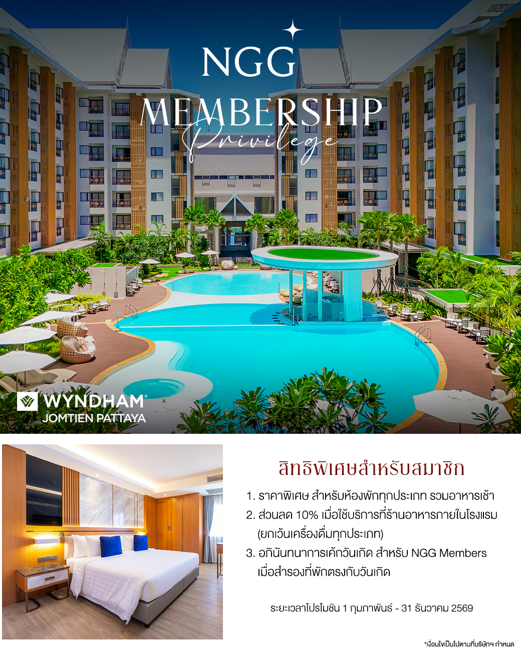 สิทธิประโยชน์จากโรงแรม Wyndham Jomtien Pattaya ห้องพักราคาพิเศษและรับส่วนลด 10% เมื่อใช้บริการร้านอาหาร