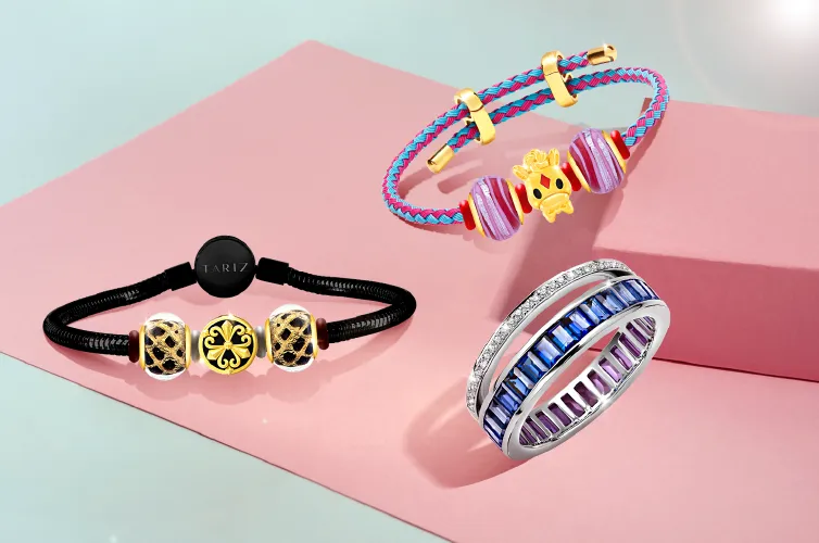2.3 กำไลและสร้อยข้อมือสำหรับความสนุกและแฟชั่น กำไลและสร้อยข้อมือเป็นของขวัญที่สะท้อนความสนุกสนานและแฟชั่น ไม่ว่าจะเป็นกำไลทองคำเรียบหรูฝังอัญมณีหลากสี สร้อยข้อมือสลับเพชรและไข่มุก หรือกำไลชาร์มคาแรคเตอร์ต่างๆ ที่ช่วยเสริมลุคให้ทันสมัยและสะท้อนสไตล์ของผู้สวมใส่ได้อย่างโดดเด่น